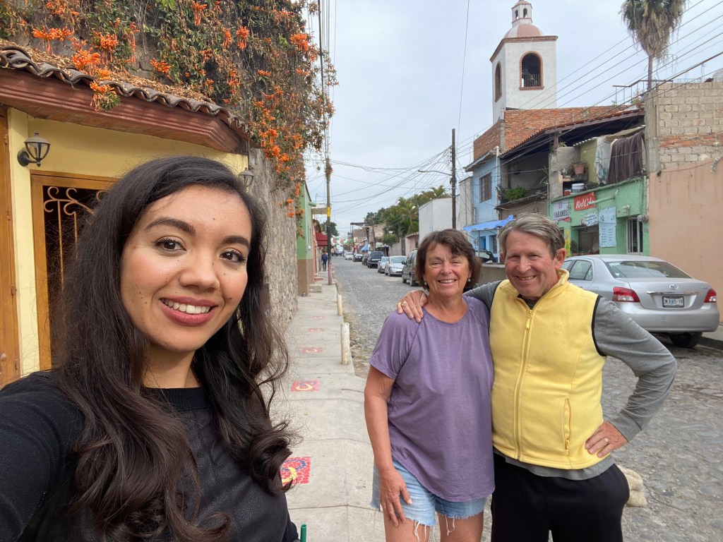 We were telling this story last week while having lunch with Sandy and some of our guests from N.C. Sandy reminded me that this simple gesture is particularly helpful when you can’t be in conversation with others. For instance, when crossing a busy street and a car stops to let you cross. They will never be able to hear you say gracias. But the raised hand says it all. I decided to make the use of this simple gesture part of my daily walkabout practice. And wow! People have really responded with big smiles and waves. So easy.
