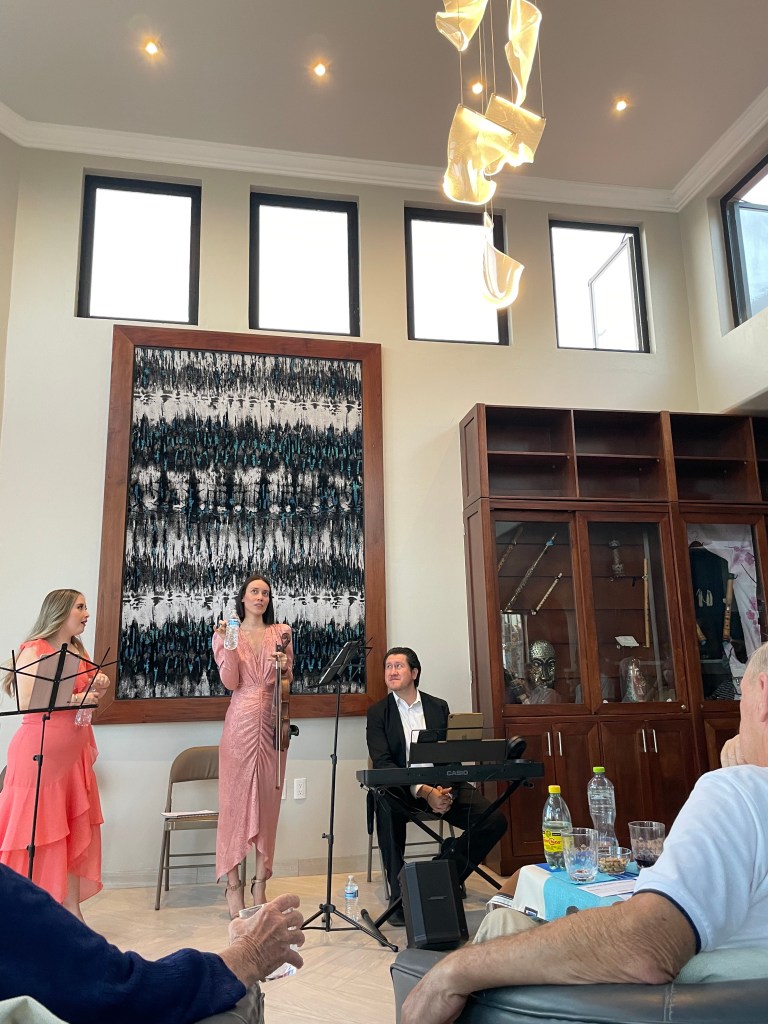 Okay, on Thursday night we went to the Auditorio for the jazz concert. Then on Sunday night we were truly fortunate to attend a house concert. Beautiful. Intimate. First-class musicians. And a sunset view. Oh my!!!