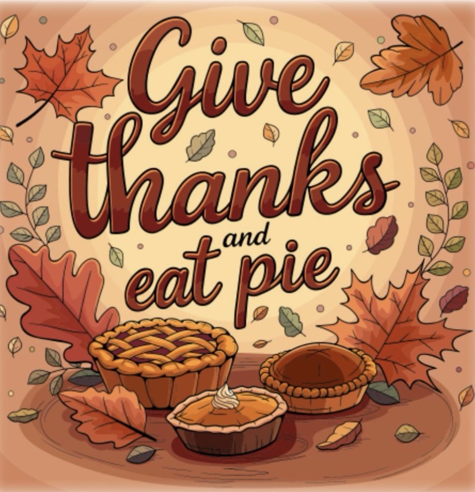 As many of us prepare for some sort of Thanksgiving….gatherings that might be filled with traditional foods, fancy table settings, watching parades, napping to football, volunteering to serve meals, or deliver meals. Possibly skipping the whole thing. Or resting up for Black Friday…Steve and I want to wish you the best and tell you a bit about our Annual Pie Party.